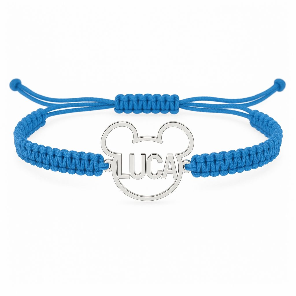 Bratara vesela si personalizata, realizata din argint 925 de inalta calitate, decorata cu un pandantiv in forma de cap Mickey, gravat cu numele dorit. Modelul este special creat pentru baietei, avand un design jucaus si modern, perfect pentru purtare zilnica.