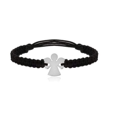 Bratara eleganta si plina de semnificatie, realizata din argint 925 placat cu aur de 24K, decorata cu un pandantiv in forma de inger – simbol al protectiei, iubirii si credintei. Snurul negru impletit ofera un contrast rafinat, potrivit atat pentru barbati, cat si pentru femei, fiind un accesoriu unisex cu valoare spirituala.
