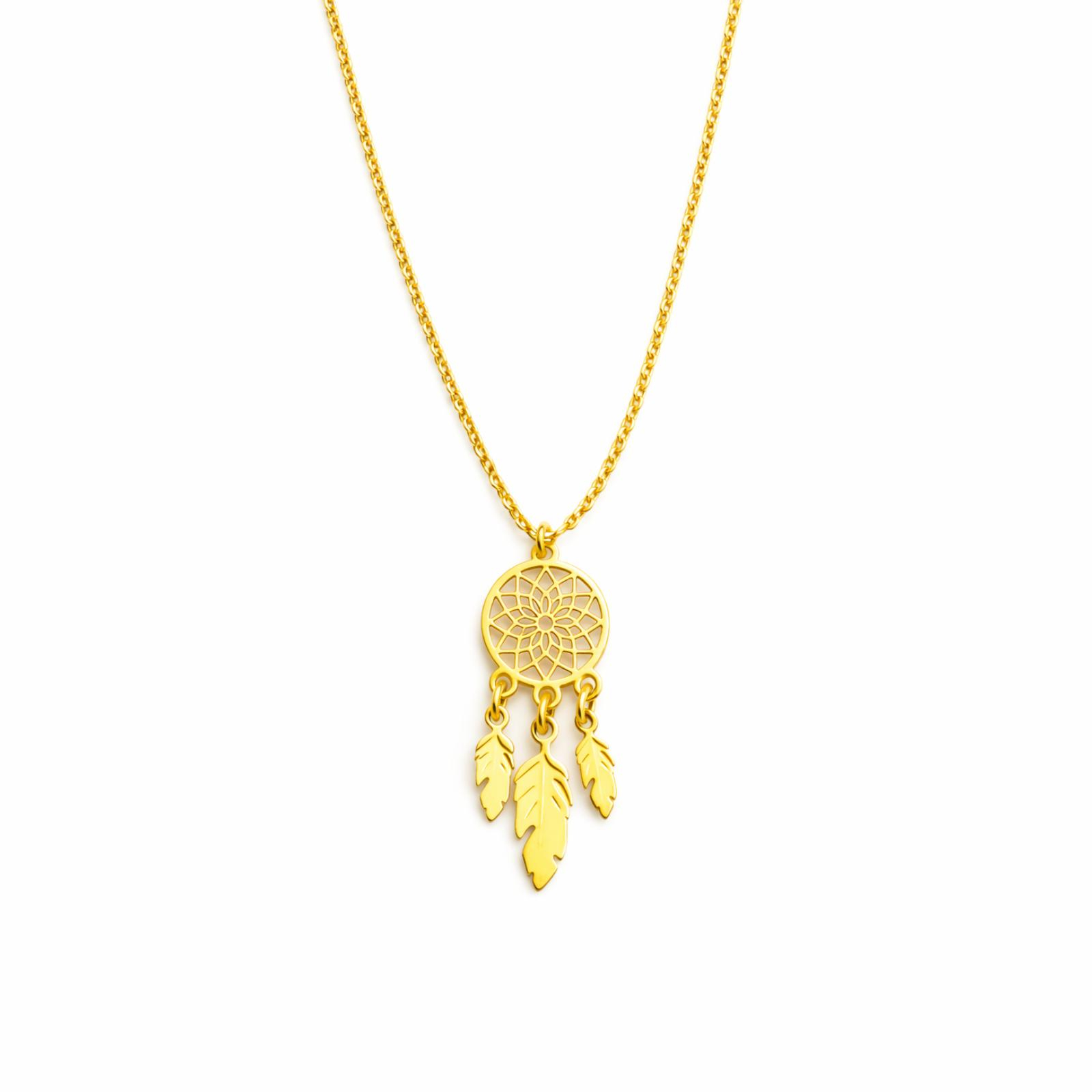 Lantisor cu pandantiv Dreamcatcher și pene, Argint 925 placat cu aur 24K