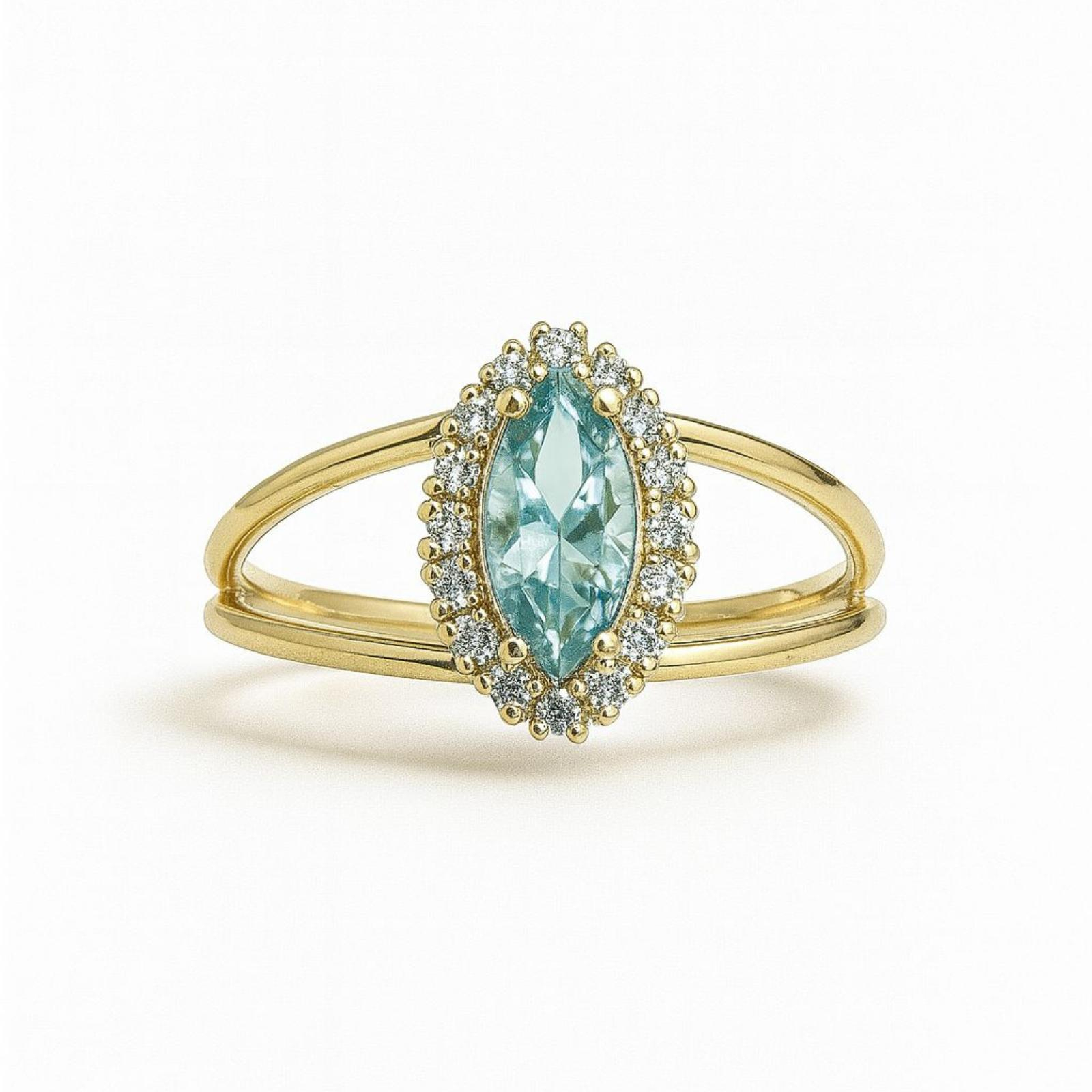 ✔️ Piatra centrala: Zirconiu albastru taiat marquise