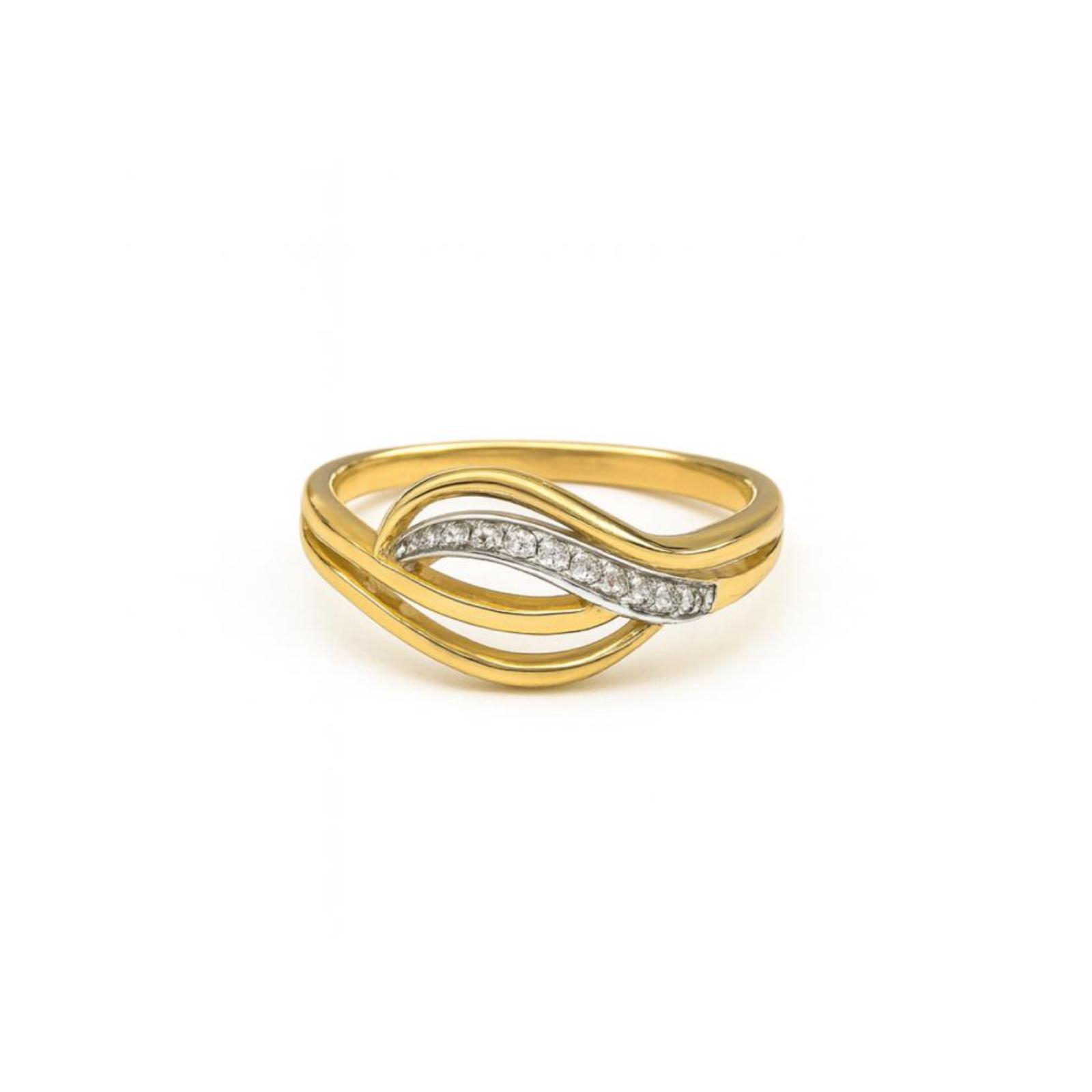 Eleganță fluidă într-o piesă de bijuterie – inelul ''GOLDEN FLOW WAVE'' combină armonios două benzi din aur galben, unite într-o mișcare lină, completată de un rând de zirconii albe care captează lumina cu fiecare gest. Designul sofisticat, dar versatil, îl face ideal pentru ținute de zi sau de seară.