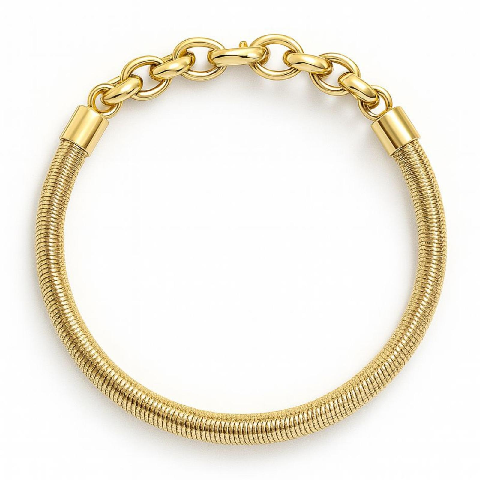 Bratara 'Serpen Gold' Aur 14K este o piesa de efect, cu un design elegant si modern. Modelul tip sarpe si zalele masive ii confera un aer impunator, pastrand totodata rafinamentul si versatilitatea unei bijuterii din aur autentic.