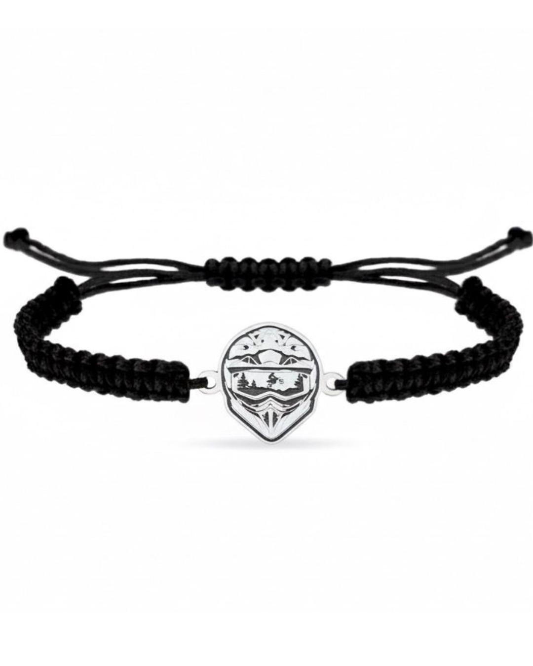 Brățară din argint 925, cu un pandantiv în formă de cască moto stilizată, simbol al curajului, libertății și pasiunii pentru adrenalină. Designul atent detaliat este completat de șnurul negru împletit manual, care oferă un aspect modern și echilibrat între eleganță și forță.