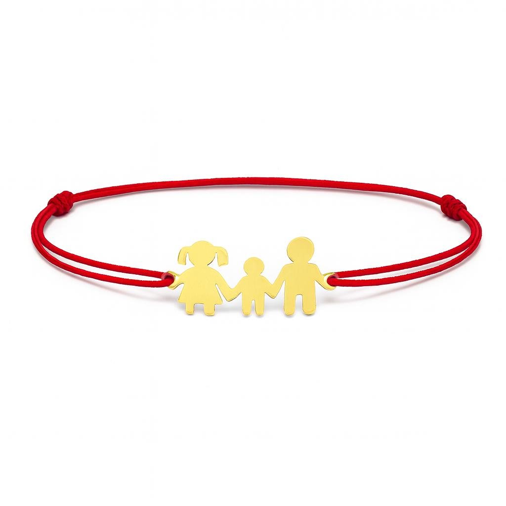 Bratara Familie din argint 925 placata cu aur pe snur negru impletit