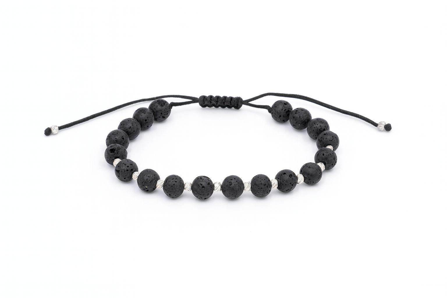 Aceasta bratara imbina energia naturala a rocii vulcanice cu eleganta argintului 925, oferind un accesoriu modern si versatil. Textura unica a bilutelor vulcanice este pusa in valoare de stralucirea discreta a elementelor din argint fatetat, creand un contrast deosebit.