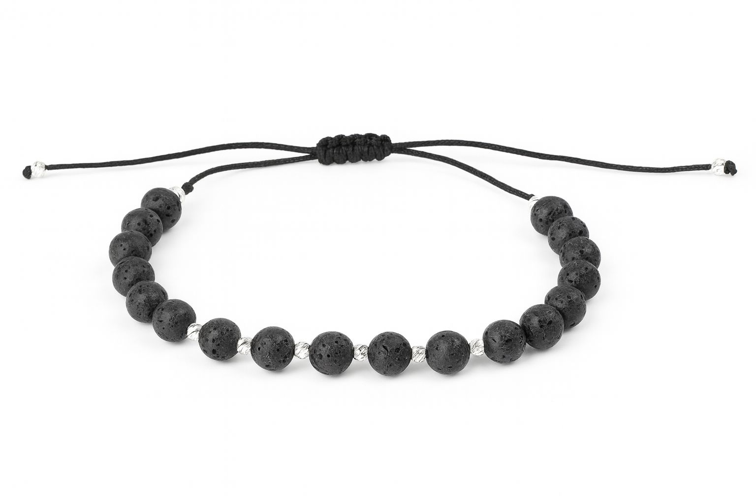 Aceasta bratara imbina energia naturala a rocii vulcanice cu eleganta argintului 925, oferind un accesoriu modern si versatil. Textura unica a bilutelor vulcanice este pusa in valoare de stralucirea discreta a elementelor din argint fatetat, creand un contrast deosebit.