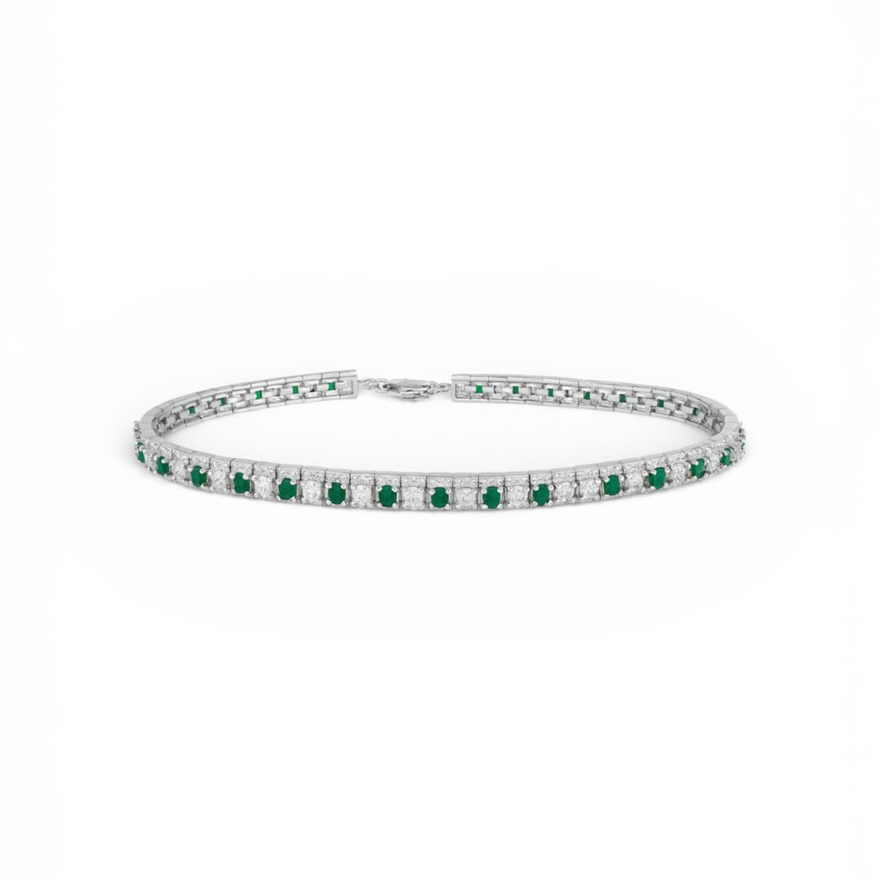 Aceasta bratara deosebita imbina stilul clasic cu rafinamentul modern, avand un design geometric cu pietre verzi smarald si zirconii albe perfect aliniate. Realizata din argint 925, este ideala pentru femeile care vor sa straluceasca discret, dar sigur.