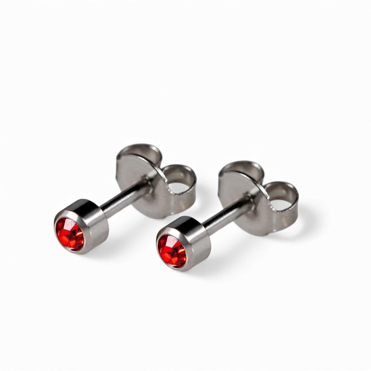 Realizati din otel inoxidabil acoperit cu strat argintiu si decorati cu piatra rubin, acesti cercei sunt hipoalergenici si nu contin nichel – ideali pentru persoanele cu piele sensibila sau alergii.