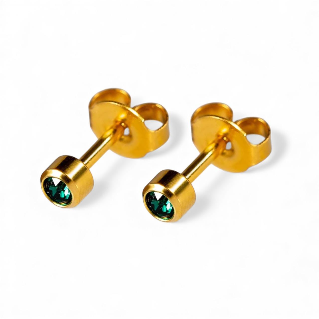 Realizati din otel inoxidabil acoperit cu strat galben si decorati cu smarald verde, acesti cercei sunt hipoalergenici si nu contin nichel – ideali pentru persoanele cu piele sensibila sau alergii.