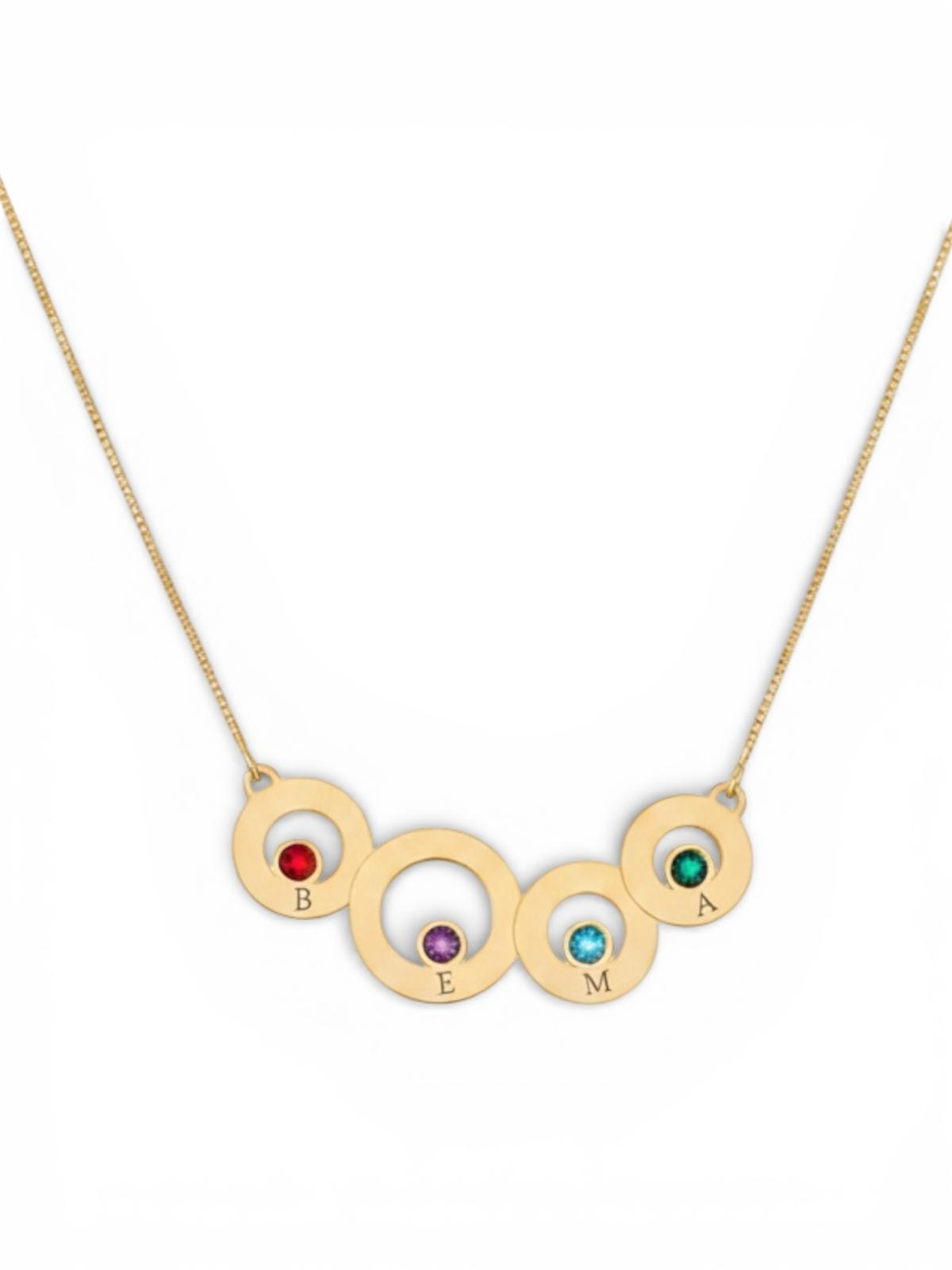 Celebreaza conexiunile speciale cu acest lantisor din argint 925 placat cu aur, un accesoriu plin de semnificatie si culoare. Designul unic include patru pandantive circulare intrepatrunse, fiecare fiind decorat cu o piatra cubic zirconia si o initiala discreta, simbolizand legatura stransa dintre persoanele dragi.