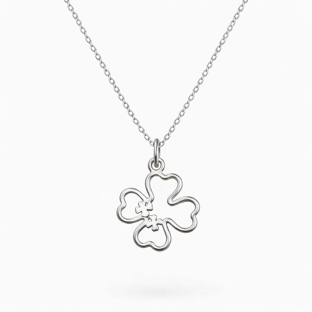 Colier delicat din argint 925 placat cu aur 24K, accesorizat cu pandantiv în formă de trifoi – simbol al norocului, speranței și echilibrului. Designul fin și feminin îl transformă într-un accesoriu versatil, potrivit atât pentru purtare zilnică, cât și pentru ocazii speciale.
