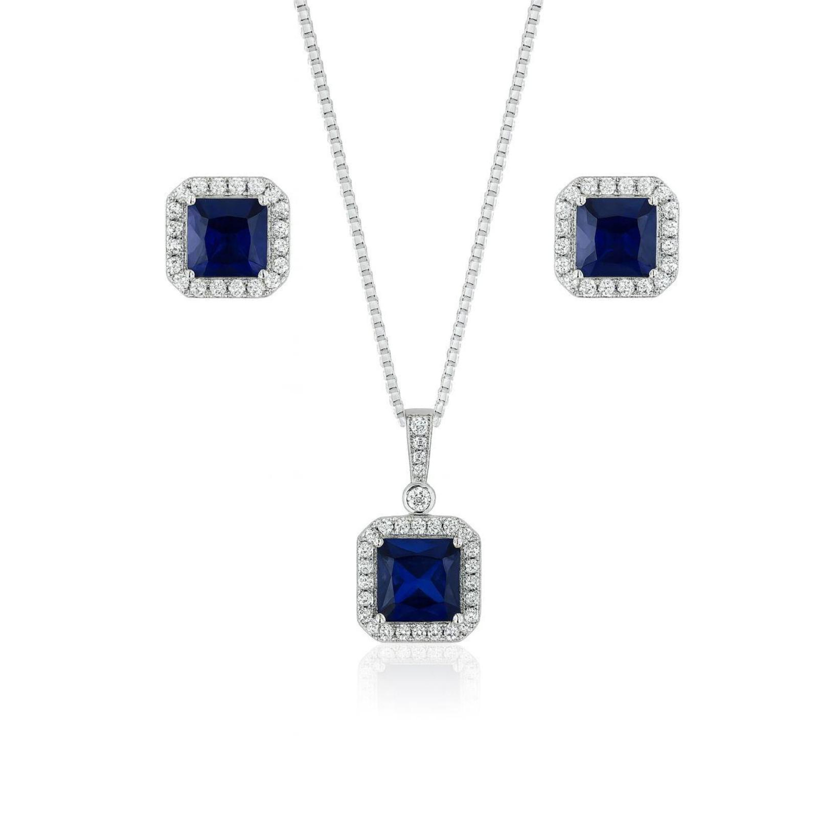 Royal Blue Set – Set bijuterii argint 925 placat rodiu, cu piatra albastra si zirconii albe