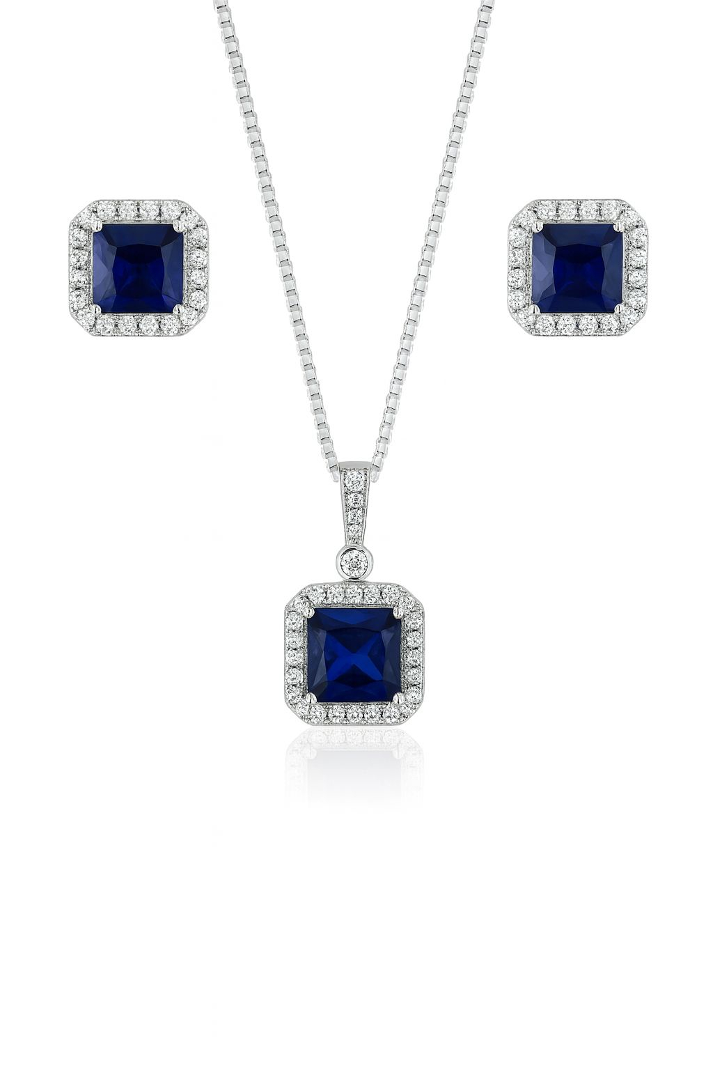 Royal Blue Set – Set bijuterii argint 925 placat rodiu, cu piatra albastra si zirconii albe